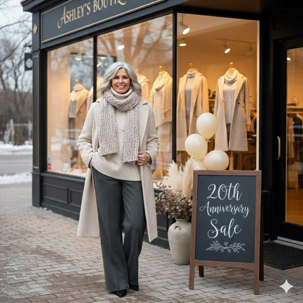 At Sarah's Boutique, every collection is thoughtfully selected with comfort, quality, and everyday style in mind. Reaching this milestone is a chance to reflect on the past 20 years and, most importantly, to thank you for being part of our journey.